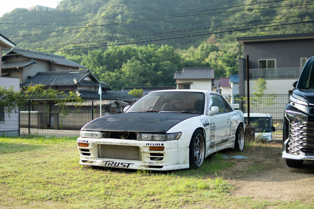 Here’s where my spidey senses started tingling. We were walking through an alleyway and I caught a glimpse of a white 2 door car to the left across the street behind a fence out of the corner of my eye. Boom! A s13! Immediately had to go over there.
